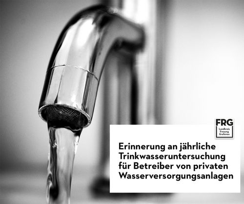 Das Gesundheitsamt Freyung-Grafenau möchte hiermit die Betreiber von privaten Wasserversorgungsanlagen an die jährliche Trinkwasseruntersuchung erinnern. Wer die Analyse für das Jahr 2025 noch nicht beauftragt hat, sollte dies zeitnah bei einem zugelassenen Labor nachholen. Die Befunde der Untersuchung sind nach Erhalt dem Gesundheitsamt Freyung-Grafenau vorzugsweise per E-Mail an trinkwasser@landkreis-frg.de zu übermitteln. Bei Fragen stehen die Mitarbeiter des Gesundheitsamtes über die genannte E-Mailadresse oder telefonisch unter 08551/57-4000 zur Verfügung.