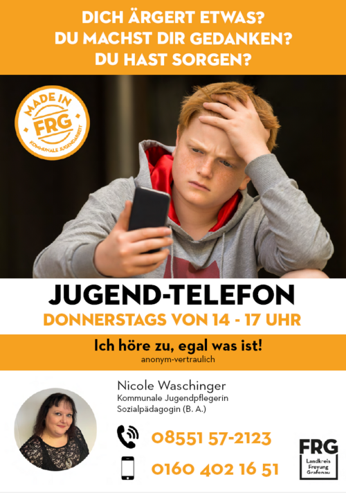 Corona, Klimawandel, Krieg - die vielen Krisen der letzten Jahre haben besonders bei jungen Menschen ihre Spuren hinterlassen. Diverse Umfragen belegen eine hohe psychische Belastung und ein Gefühl von Unsicherheit bei jungen Leuten. Auch im Hinblick auf das finanzielle Auskommen wegen der hohen Inflation machen sich einige von ihnen Sorgen. Die kommunale Jugendarbeit des Landratsamts FRG hat sich daher Gedanken gemacht, wie jungen Menschen in der aktuellen Lage begegnet werden kann, wie man sie unterstützen kann, ihnen Zuversicht für eine positive Zukunft vermitteln kann. „Der erste und wichtigste Schritt dabei ist ihnen zuzuhören“, ist sich Nicole Waschinger, die Kommunale Jugendpflegerin des Landkreises, sicher. Sie hat daher ein neues Unterstützungsangebot ins Leben gerufen, das sogenannte Jugend-Telefon. Immer donnerstags zwischen 14 und 17 Uhr bietet sie künftig die vertrauliche Telefonberatung an. Anrufen kann dabei jeder Jugendliche oder junge Mensch. Die Hintergründe können ganz unterschiedlich sein. „Wenn man sich über etwas ärgert, sich Sorgen oder Gedanken über die Zukunft macht und man gerne mit jemanden darüber sprechen möchte, ist man bei uns richtig“, erklärt Waschinger. Die Jugendlichen können dabei natürlich anonym bleiben und alles, was sie der Jugendpflegerin erzählen wird vertraulich behandelt.