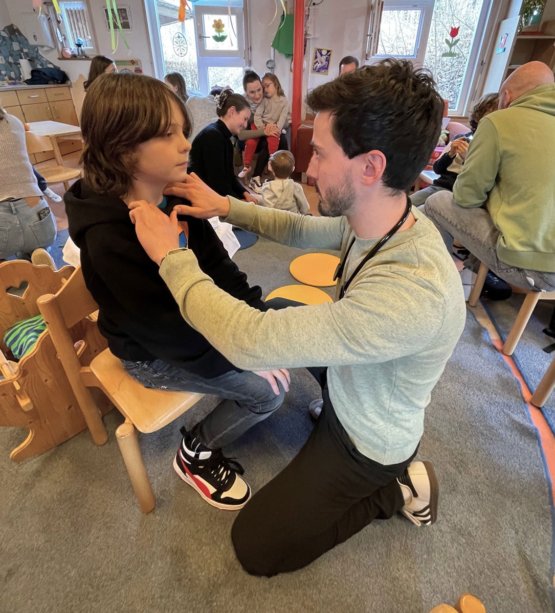 Das Regionalmanagement Freyung-Grafenau – gefördert durch das Bayerische Staatsministerium für Wirtschaft, Landesentwicklung und Energie – konnte in diesem Jahr erstmalig einen mehrstündigen Kurs organisieren, um den Studierenden die Möglichkeit zu geben, grundlegende praktische Erfahrungen in der Kinderheilkunde zu sammeln. Der Kurs, der in enger Zusammenarbeit mit dem Caritas Kindergarten St. Josef in Freyung und der Kinderklinik Dritter Orden Passau durchgeführt wurde, ermöglichte es den Studierenden, grundlegende Untersuchungen an den Kindern einzuüben und dabei wertvolle Erfahrungen in der Ansprache und im Umgang mit ihnen zu sammeln. Diese für Freyung-Grafenau neue, zusätzliche Maßnahme stellt eine innovative Herangehensweise dar, um die Lücke zwischen theoretischem Wissen und praktischer Erfahrung in der medizinischen Ausbildung ein Stück weit zu schließen. Durch die direkte Interaktion mit den Kindern des Caritas Kindergartens St. Josef konnten die Medizinstudierenden nicht nur ihr medizinisches Wissen anwenden, sondern auch ihre Fähigkeiten in der Kommunikation und im empathischen Umgang mit jungen Patientinnen und Patienten verbessern. Unter der fachlichen Anleitung zweier erfahrener Ärztinnen der Kinderklinik Passau konnten die Studierenden in einem geschützten Rahmen lernen und gleichzeitig wertvolle Rückmeldungen zu ihrer Vorgehensweise erhalten. Diese Expertinnen spielten eine entscheidende Rolle, indem sie ihr umfangreiches Wissen und ihre Erfahrungen teilten und so zu einem am Ende sehr guten Lernerlebnis beitrugen.