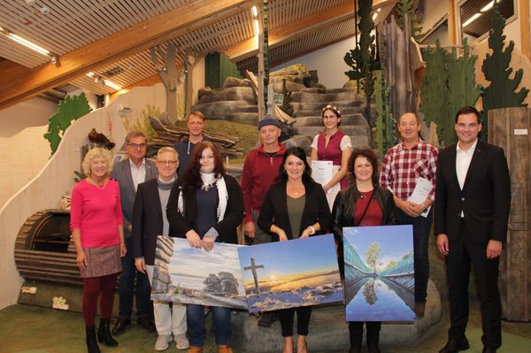 Die Preisträgerinnen und Preisträger im Bereich Foto waren Alexandra Löffelmann (Blick vom Lusen im Winter, 1. Platz), Melanie Schraml (Glasarche nach Regen, 2. Platz), Annabell Gsödl (Urzeitsteine) und Erwin Deininger (Turm Oberfrauenwald, jeweils 3. Platz).