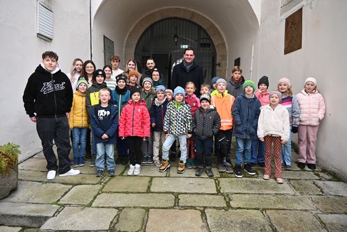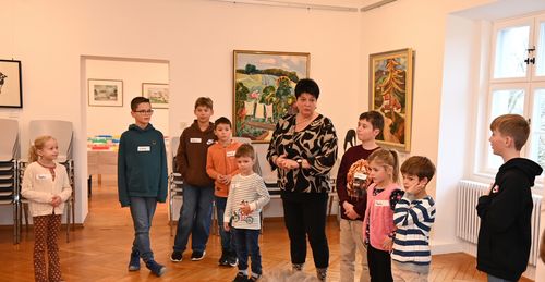 Hauptprogrammpunkt am Vormittag war danach eine spannende Führung für die kleinen Besucherinnen und Besucher durch die Galerie Wolfstein im Schloss Wolfstein. Von den Museumspädagoginnen Ramona Kesten und Maria Krüger erfuhren die Kinder viele spannende Dinge über die ausgestellten Kunstwerke und durften auch selbst zu Künstlerinnen und Künstlern werden.