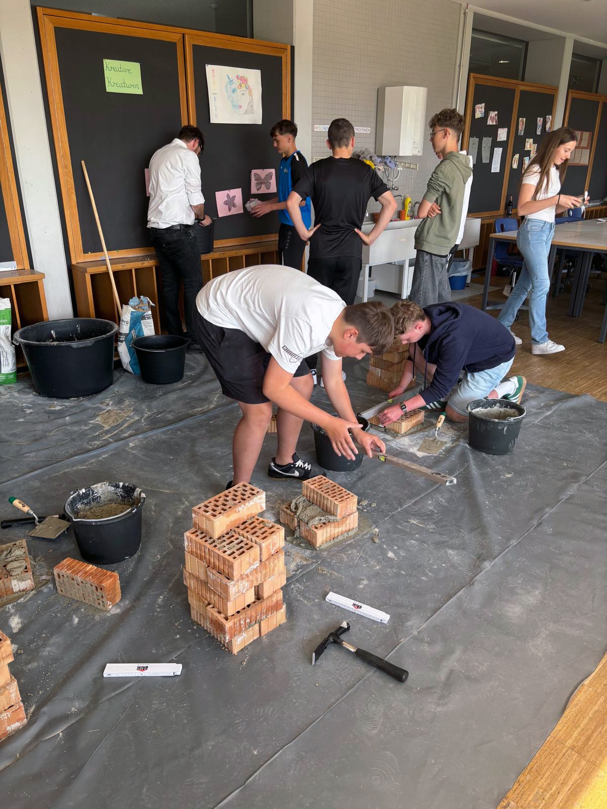 Die Schülerinnen und Schüler der 8. Klassen hatten die Möglichkeit, in die vielfältige Welt des Handwerks einzutauchen – und das nicht nur theoretisch, sondern hautnah und mit eigenen Händen. In 18 verschiedenen praktischen Workshops konnten sie sich handwerklich ausprobieren und in unterschiedlichste Berufsfelder hineinschnuppern. Sie setzten dabei unter anderem Mauerwerk, sägten, hobelten, löteten, unterstützten einen Orthopädietechniker, stellten Rohrverbindungen her, bereiteten ein Buffet mit dem Metzger zu oder mixten mit einem Gastronomen leckere Cocktails – kurzum: Handwerk erleben, begreifen und ausprobieren.