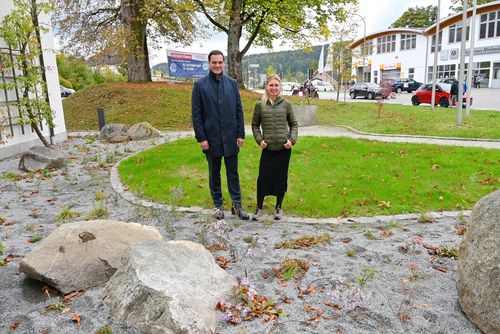 Eine Besonderheit ist die Anlage vor dem Dienstgebäude Königsfeld: Dort wurde das Beet auf einer Splittschicht angelegt. Fröhler erklärt dazu: „Das bleibt hier natürlich keine Schotterwüste, wie manche vielleicht befürchten. Der Splitt sorgt für geringe Unkrautentwicklung und fördert ein tiefes Wurzelwachstum, was die Pflanzen widerstandsfähiger gegen Trockenheit macht.“ In ein bis zwei Jahren, wenn die Stauden gut eingewachsen sind, werde man von der Splittschicht kaum mehr etwas sehen.