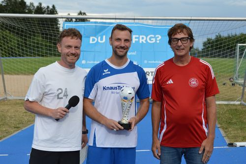 Platz drei ging – nach einem spannenden Spiel gegen die PARAT Technology GmbH & Co. KG (Neureichenau) - an die Sesotec GmbH aus Schönberg, deren Team nach einer Brauereiführung bei Lang Bräu ein zünftiges Reindlessen im Bräustüberl in Freyung genießen darf (Wert: 400 Euro). Mario Strahberger von der Knaus Tabbert AG erzielte mit sieben Treffern die meisten Tore des Turniers und wurde damit als bester Torschütze ausgezeichnet.