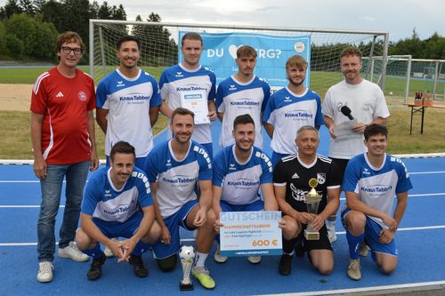 Im Finale setzte sich die Knaus Tabbert AG aus Jandelsbrunn souverän mit 4:0 gegen die Aptar Freyung GmbH durch und sicherte sich damit den Turniersieg. Wirtschaftsreferent Johannes Gastinger und Regionalmanager Stefan Schuster überreichten den Siegern den MADE in FRG-Pokal sowie einen Gutschein für einen Mannschaftsabend im Lobo Laquinta Nightclub (Waldkirchen) im Wert von 600 Euro. Die Zweitplatzierten der Aptar Freyung GmbH dürfen sich auf einen geselligen Abend bei einem Volksfest ihrer Wahl im Landkreis freuen – im Wert von 500 Euro.