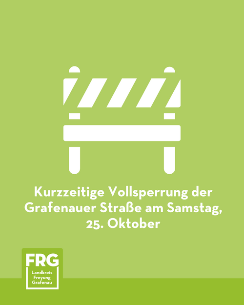 Am Samstag, 25. Oktober, wird die Grafenauer Straße im Bereich des Landratsamts Freyung-Grafenau von etwa 11:20 Uhr bis 12:45 Uhr voll gesperrt. Grund ist ein Zugversuch zur Abschätzung der Standsicherheit eines Baumes vor dem Dienstgebäude Königsfeld.