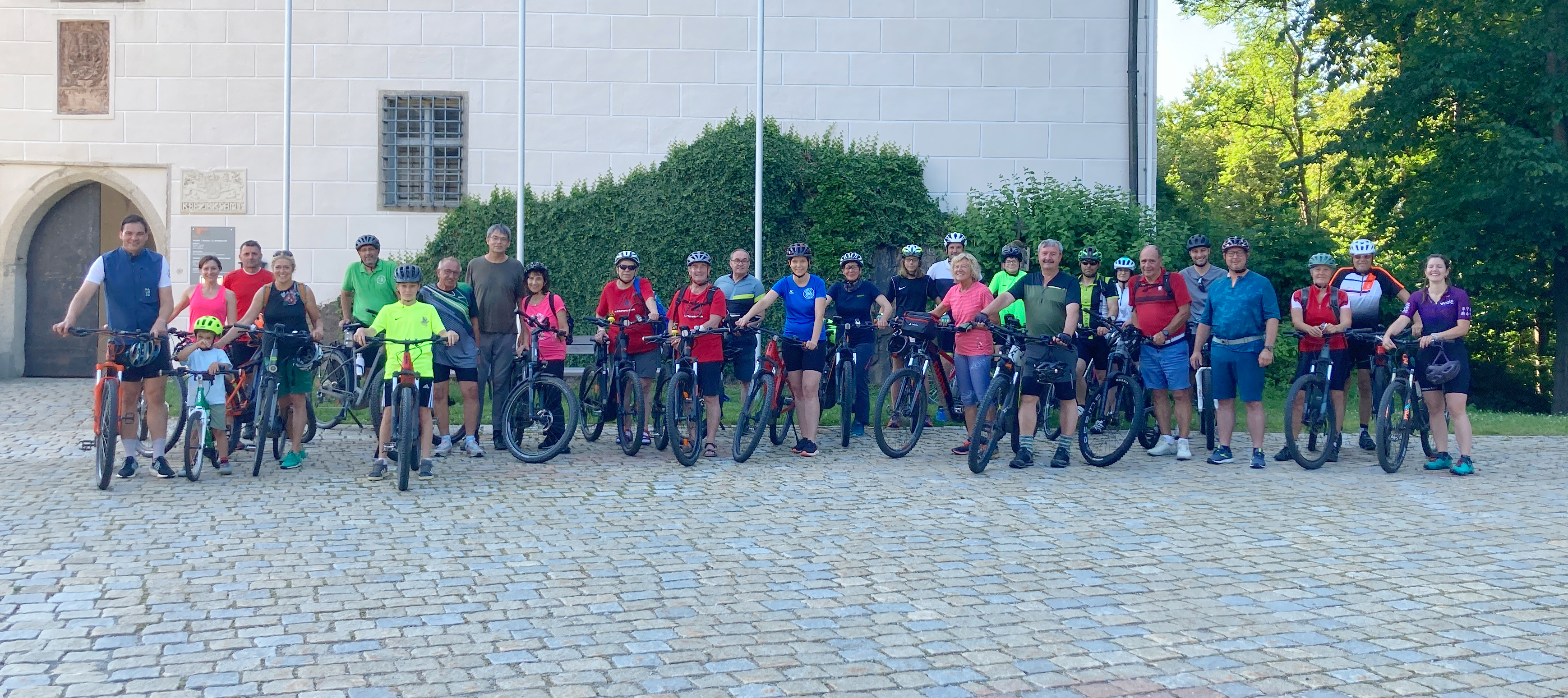 Ein besonderes Highlight beim diesjährigen Stadtradeln war wieder die Feierabend-Radltour in Freyung. Bei der Aktion steht das Fahren in Gemeinschaft im Vordergrund, weswegen Landrat Sebastian Gruber auch in diesem Jahr wieder zu einer gemeinsamen Ausfahrt eingeladen hatte. Mit dabei waren neben der Weiteren Stellvertreterin des Landrats, Hilde Greiner, auch Bürgermeister, Kreistagsmitglieder, Mitarbeitende aus der Verwaltung und radbegeisterte Bürgerinnen und Bürger. Nach einem kurzen Grußwort durch Landrat Sebastian Gruber und Klimaschutzbeauftragte Eva Osterer startete die Gruppe von gut 30 Personen die zehn Kilometer lange Tour um den Geyersberg, über Falkenbach und Solla. Die Fahrt ließ Platz für Gespräche und die Teilnehmenden hatten natürlich auch Zeit, den schönen Ausblick in den Landkreis zu genießen. Zum Abschluss wurden alle Teilnehmenden zu kühlen Getränken und einer kleinen Brotzeit im Schlossinnenhof eingeladen.