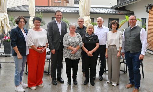 Im Rahmen einer kleinen Feierstunde im Wirtshaus „Zum Wendl“ im Hotel-Gasthof „Zur Post“ in Freyung konnte Landrat Sebastian Gruber sieben Mitarbeiterinnen und Mitarbeiter des Landratsamtes für ihre langjährigen Dienstzeiten ehren, oder sie teilweise nach Jahrzenten in Diensten des Landratsamtes in den Ruhestand verabschieden. Landrat Gruber sprach Ihnen allen im Namen des Landkreises „großen Dank und Anerkennung“ aus. „Sie haben sich im Laufe ihrer jahrzehntelangen Karriere immer wieder neuen, schwierigen Herausforderungen gestellt“, würdigte Gruber. Glückwünsche kamen auch von Personalratsvorsitzendem Alexander Bertelshofer, der zusammen mit Gruber die Ehrungen durchführte. Der Landrat würdigte in kurzen Laudationes die Leistungen der Geehrten. Besonders hervor hob er zwei Frauen, die beide über 40 Jahre „im Dienste des Landkreises und seiner Bürgerinnen und Bürger“ tätig waren: Christine Achatz und Anita Königsdorfer.